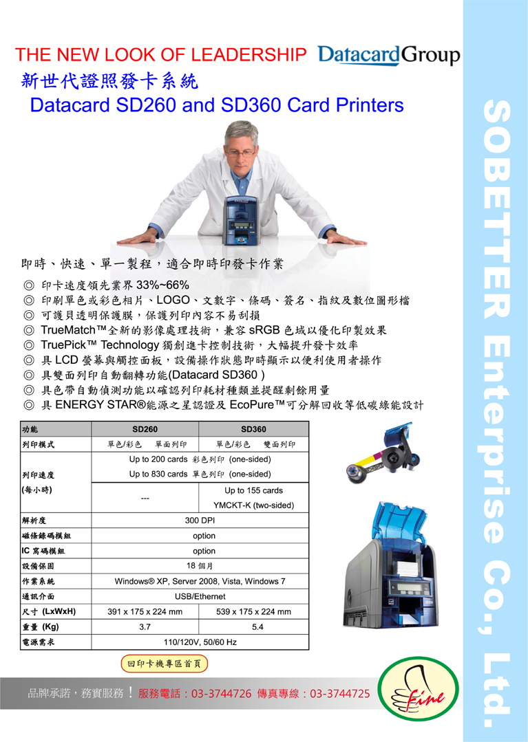 識別證印製/發卡設備銷售維護/感應卡片製作----會員卡、貴賓卡承製/IC製造系統整合/電腦刷卡系統 護貝機、護貝膠膜批售/無線膠裝系統/鋼圈膠環裝訂系統 桃園公司 334 桃園市八德區義勇街88巷47號(請從66巷入) TEL:03-3744726 FAX:03-3744725 行動:0910-251782 電腦週邊銷售維修--------印表機銷售維修--------軟硬體整合技術諮詢服務 台北公司 114 台北市內湖區民權東路六段64號3樓 TEL:02-87919377 FAX:02-87919380 行動:0910-187655 網頁最後更新時間: 2023-02-18 12:00 PM |